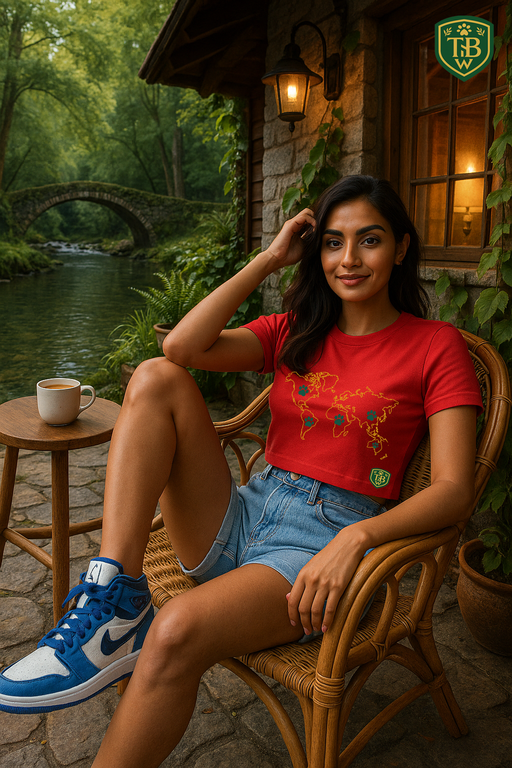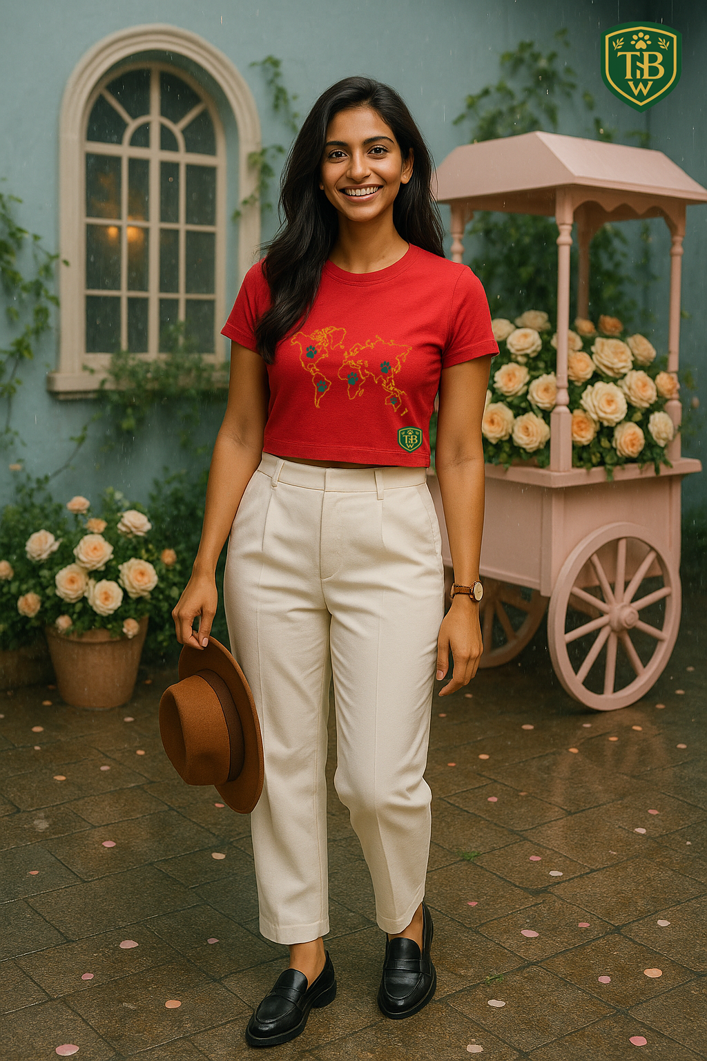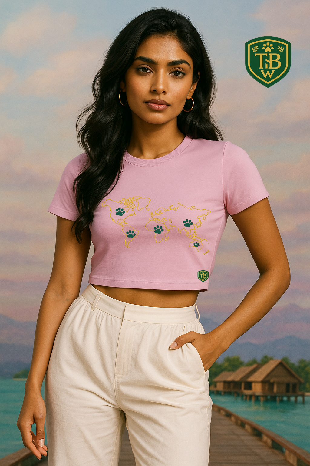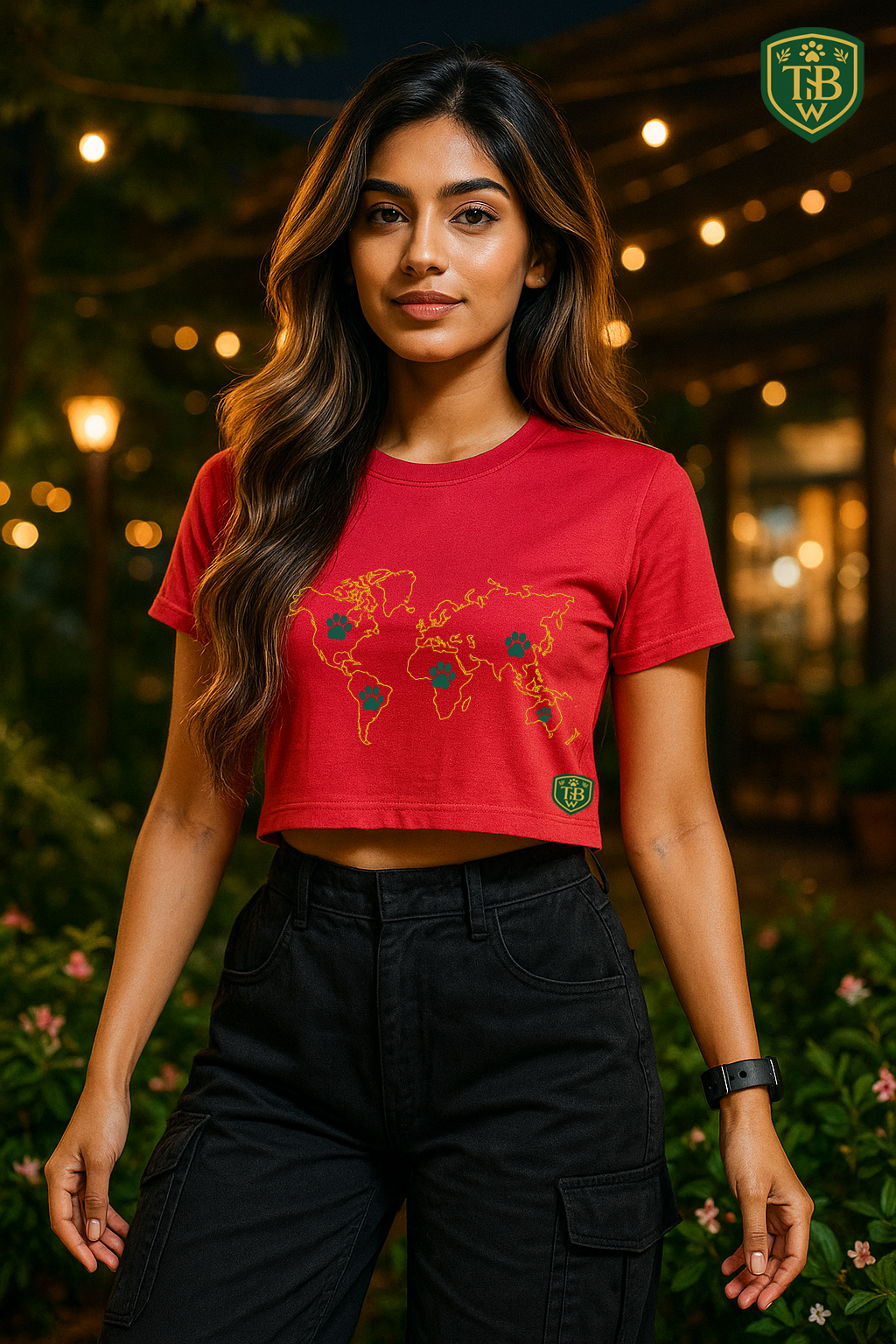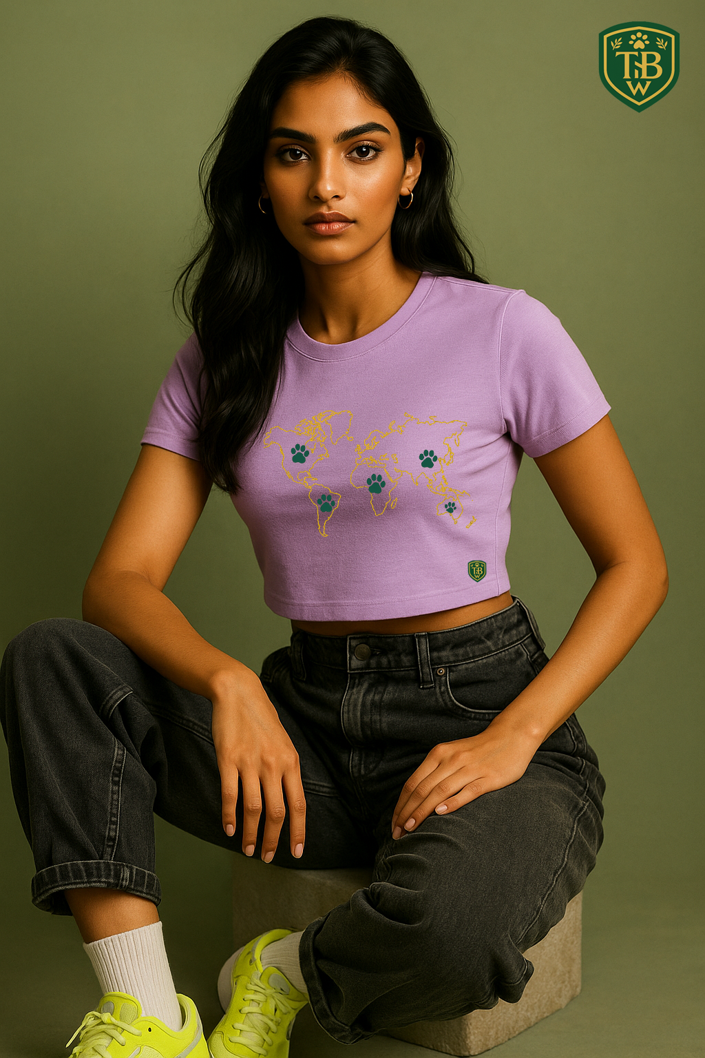 Travel the world in style with our 'Global Paws' crop top. This cream-toned tee features a golden embroidered world map dotted with signature pawprints. It’s more than a look—it's a statement of your global love for animals. Our crop-tops are made with high-quality 24s Combed Cotton fabric and bio-washed.