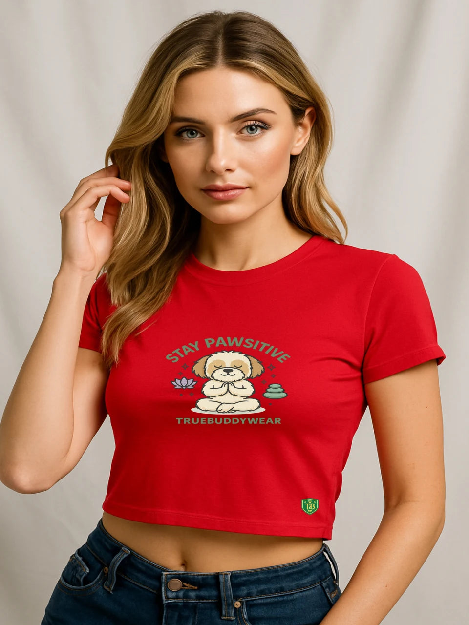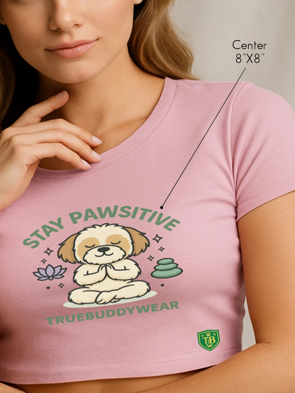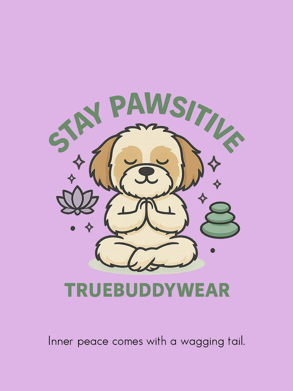 Let mindfulness meet fur-friendship in our 'Stay Pawsitive' tee. Buddy meditates amid lavender blooms and floating zen energy - a perfect tee for calm vibes and positive style.