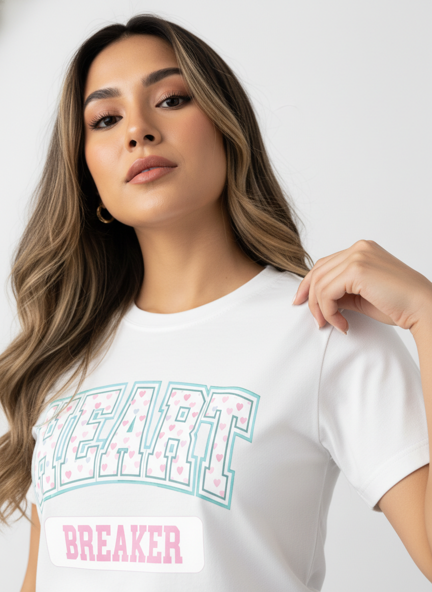 Bold varsity lettering filled with tiny pastel hearts gives this design a sweet-meets-savage charm made for people who love playful confidence. “Heartbreaker” isn’t just a word here — it’s a whole persona.
