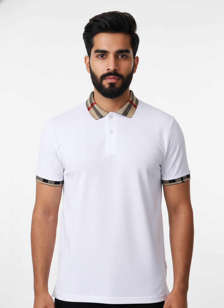 The Heritage Collar Polo brings a clean, high-contrast aesthetic designed for people who enjoy looking sharp without trying too hard. The bright white body pairs effortlessly with our signature heritage-inspired check collar and sleeve edges — a detail that elevates the entire silhouette.